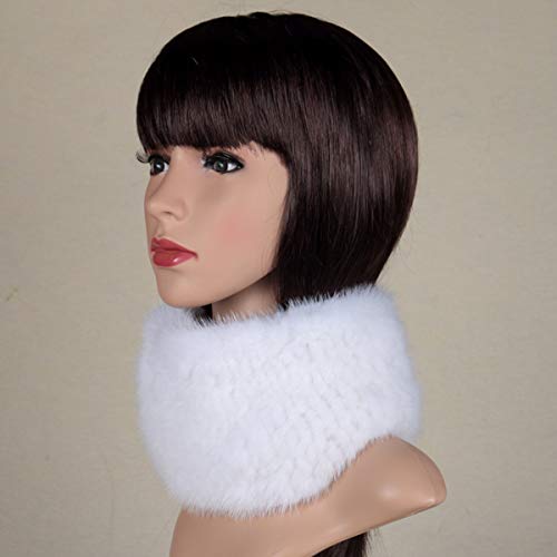 KAISHIN Sciarpa a doppio uso per donna Sciarpe in vera lana lavorate a maglia Colletto elastico in pelliccia di visone (Bianco)
