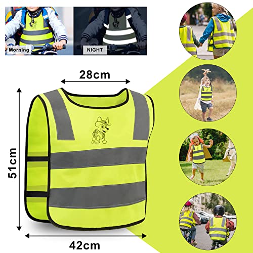 ✅ SICUREZZA PER BAMBINI - Set di 2 gilet ad alta visibilità per bambini. Garantisce una visibilità ottimale al buio/crepuscolo e riduce il rischio di incidenti lungo il percorso verso la scuola e l'asilo.
