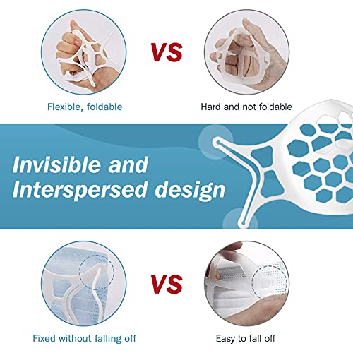 KAIYZP Telaio di Supporto Interno Viso in Silicone 3D, Sia Riutilizzabile Che Lavabile,Crea Più Spazio per Respirare,, per Scuola, Ospedale, Ufficio (White,5,M)