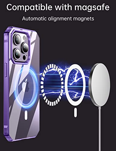 Kakalux [Custodia per iPhone 14Pro,Custodia magnetica iPhone 14Pro,compatibile con la ricarica wireless, protezione di livello militare contro le cadute, per iPhone 14Pro(6.1'')-Viola
