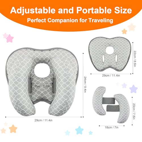 Multifunzione e portatile, il cuscino di supporto per testa e collo è un articolo indispensabile per il riposo in viaggio e in aereo, dimensioni approssimative: 27 x 24 cm, diametro del foro centrale: 5,5 cm. Nota bene: misurare le dimensioni della testa del bambino prima dell'acquisto per assicurarsi che sia adatto al tuo bambino.