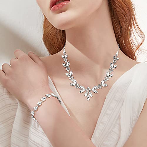 Kakonia gioielli da sposa per la sposa, collana di strass di cristallo, orecchini, set di braccialetti per gioielli da damigella d'onore per feste di fine anno da donna