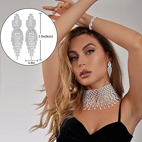 [SET DI GIOIELLI PER DONNE] Riceverai questo set di gioielli con strass di cristallo, tra cui 1 pezzo di collana girocollo con strass, 1 pezzo di braccialetto di cristallo di strass, 1 paio di orecchini pendenti con strass, set di gioielli lucenti e delicati, set completo per soddisfare le tue esigenze quotidiane e di abbinamento alle feste, regala hai un aspetto affascinante e vinci più complimenti.