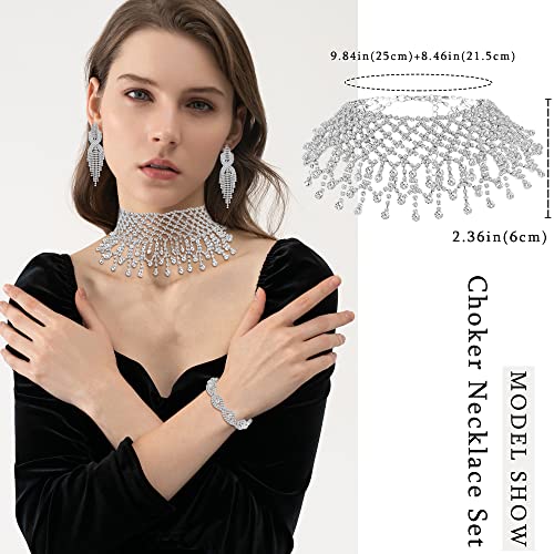 [MISURA REGOLABILE] Lunghezza collana girocollo: 9,84 "+8,46", lunghezza bracciale con strass: 7,28" + 2,17", lunghezza orecchini pendenti con nappe: 3,5 "* 0,8", design flessibile e premuroso, comodo da regolare, nessuna preoccupazione per problemi di dimensioni .