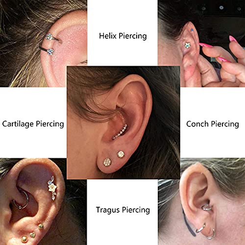 【Orecchini di cartilagine per donna】 Questo set di orecchini di cartilagine include 5 piercing alla cartilagine placcati argento, 4 orecchini a bottone per cartilagine e 1 cerchio per orecchini di cartilagine, graziosi gioielli da piercing alla cartilagine per le donne