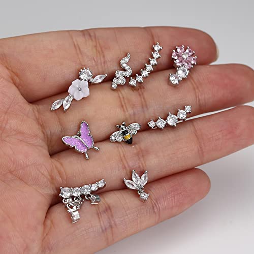Set di orecchini per cartilagine: 9 borchie per orecchini con cartilagine color argento, orecchini con cartilagine a farfalla, orecchini con cartilagine curvi, orecchini con cartilagine di fiori, orecchini con cartilagine d'api, orecchini con cartilagine di serpente, orecchini con cartilagine pendenti, ecc., vari piercing alla cartilagine soddisfano le diverse esigenze di abbinamento
