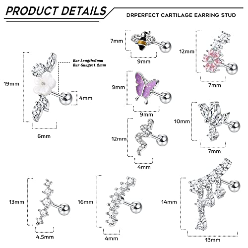 Materiale: orecchino cartilagineo in acciaio inossidabile, montatura in rame tempestata di pietre di zirconia cubica AAA +, questi gioielli cartilaginei non provocano alcuna reazione allergica alla pelle sensibile, resistenti, leggeri e ideali per tutto il giorno