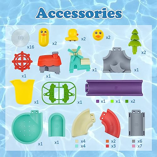 KalaDuck 62PCS Giocattolo da Bagno a Scivolo d'anatra, Giocattoli da Bagno a Scivolo d'acqua Fai Da Te per Bambini di Età Compresa tra 4 e 8 Anni, Giocattoli da Vasca da Parete per Ragazzi e Ragazze
