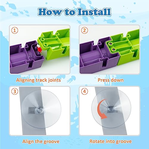 【Scivolo d'acqua multi-scena】Il giocattolo acquascivolo ha potenti ventose, puoi attaccarle su superfici lisce e pulite, come porte in vetro, finestre di vetro, frigoriferi e specchi, ecc. Non lasciare più che la pista sia limitata al bagno. I più piccoli possono sentire il divertimento dello scivolo in luoghi diversi.