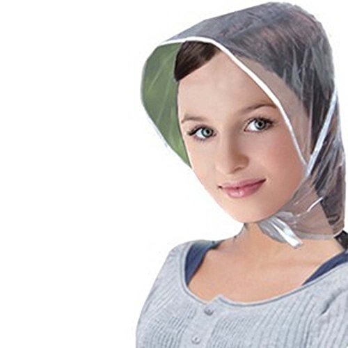 1. La forma e i nastri di chiusura sono adatti a tutti i tipi di acconciatura. 2. Pratico, leggero, impermeabile e antipolvere. 3. Necessario per una giornata di pioggia e facile da trasportare. 4. Dimensioni: come da foto. Materiale: polietilene. 5. Questo cappuccio alla moda antipioggia e antivento è adatto a tutti i tipi di acconciatura.