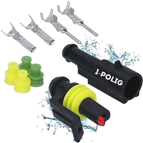 Contenuto della confezione: 1 alloggiamento per presa AMP Superseal a 1 polo, 1 alloggiamento per penna AMP Superseal, 1 polo, 2 contatti femmina AMP Superseal, 0,75 - 1,5 mm², 2 X AMP Superseal contatto con pin 0,75 - 1,5 mm², 2 X AMP Superseal, tenuta singola giallo per diametro esterno 1,8 X AMP MP Superseal Single Guarnizione verde per diametro esterno 1,4 - 1,7 mm