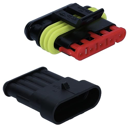 Contenuto della confezione: 1 alloggiamento per presa AMP Superseal a 5 poli, 1 alloggiamento per penna AMP Superseal a 5 poli, 6 contatti femmina AMP Superseal 0,75-1,5 mm², 6 X AMP Superseal contatto con pin 0,75-1,5 mm², 10 X AMP Superseal, guarnizione singola gialla per diametro esterno 1,8-2,4 mm. x AMP Supersee. Guarnizione singola verde per diametro esterno 1,4 - 1,7 mm