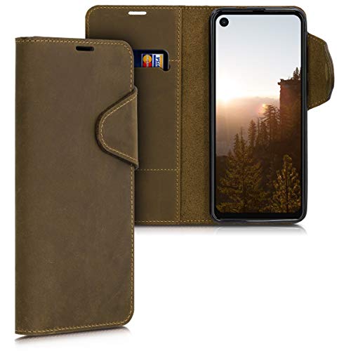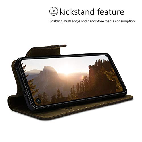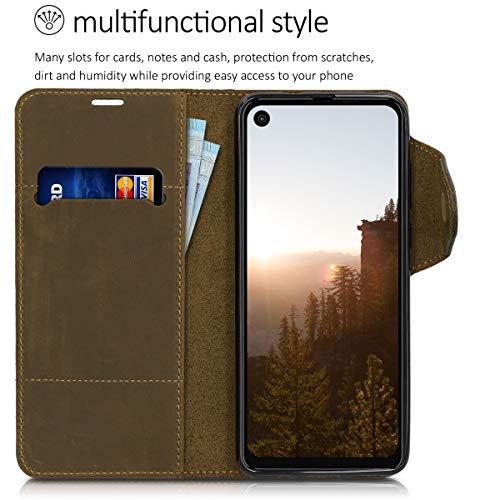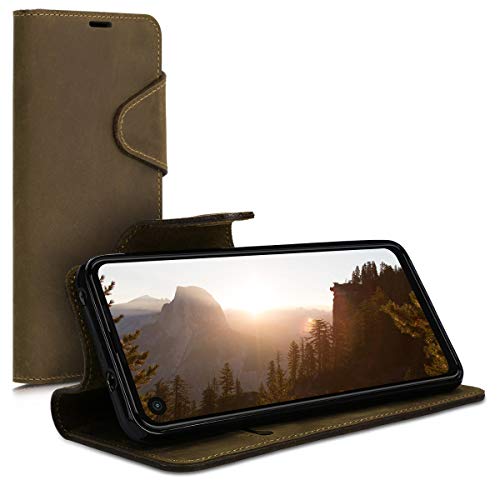 Kalibri Cover Compatibile con Motorola One Vision - Custodia a Portafoglio in Vera Pelle - Cover con Porta Carte e Supporto - Stand Wallet Case