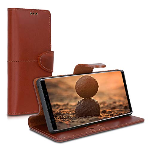 Kalibri Cover compatibile con Samsung Galaxy Note 9 - Custodia a portafoglio per cellulare in vera pelle con porta carte e funzione Stand - Wallet Case