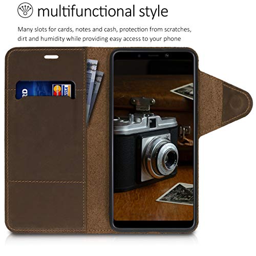 Kalibri Cover Compatibile con Samsung Galaxy A9 (2018) - Custodia a Portafoglio in Vera Pelle - Cover con Porta Carte e Supporto - Stand Wallet Case