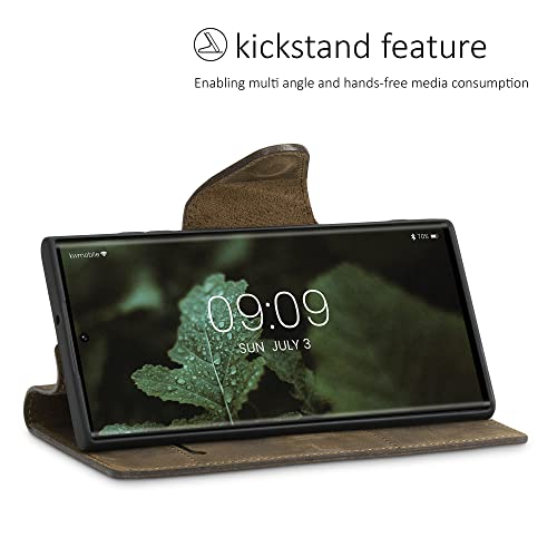 Kalibri Cover Compatibile con Samsung Galaxy S22 Ultra - Custodia a Portafoglio in Vera Pelle - Cover con Porta Carte e Supporto - Stand Wallet Case