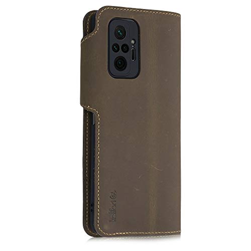 Kalibri Cover Compatibile con Xiaomi Redmi Note 10 Pro - Custodia a Portafoglio in Vera Pelle - Cover con Porta Carte e Supporto - Stand Wallet Case