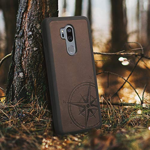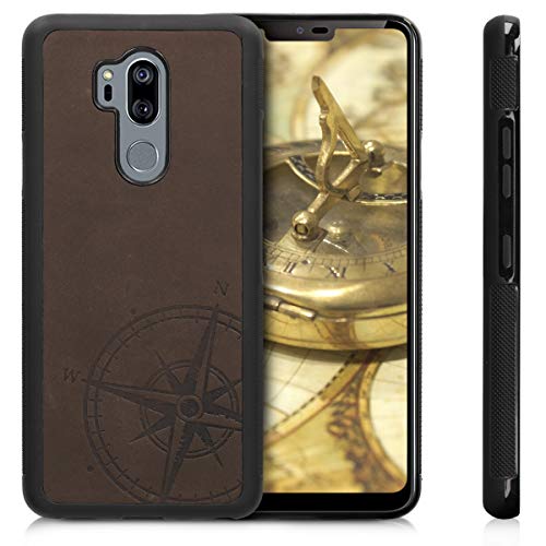 Kalibri Back Cover in pelle compatibile con LG G7 ThinQ/Fit/One - Backcover rigida con bordi antiscivolo in TPU - Custodia protettiva vera pelle - Bussola vintage marrone