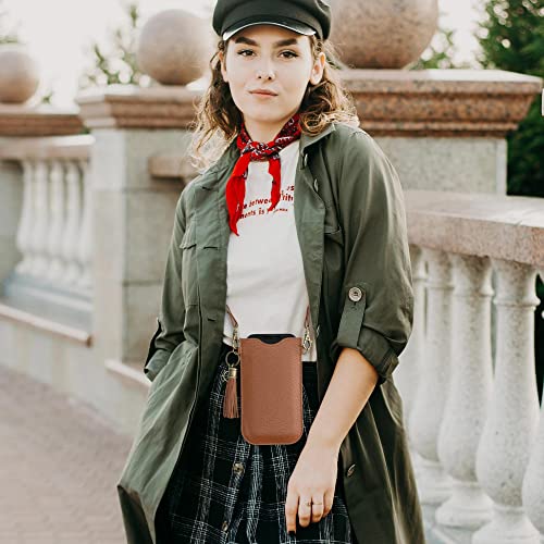 Kalibri Custodia Smartphone Universale in Vera Pelle - Astuccio Porta-cellulare con Tracolla da Appendere - Borsa con Ciondolo e Portacarte - marrone