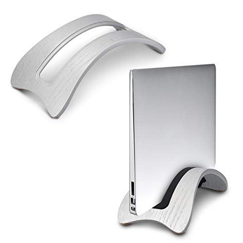 Kalibri Stand in Legno Naturale per Portatile - Sostegno Appoggio Verticale per Tablet Pc - per Modelli Vecchi di MacBook 2010-2017 - Argento