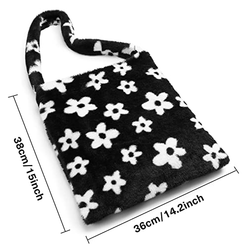 KALIDI - Borsa a tracolla in peluche con chiusura lampo, per ragazze, Fiori bianchi.