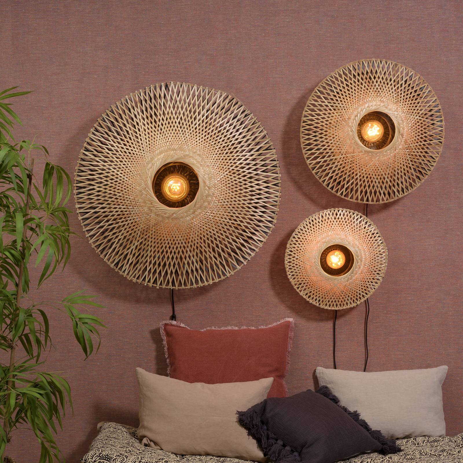 Lampada da parete rotonda Kalimantan con cavo e interruttore Questa lampada da parete rotonda è un elemento di illuminazione unico fatto di materiali naturali e conserva la colorazione altrettanto naturale. Kalimantan ispira con la sua ombra intrecciata fatta di bambù flessibile e robusto, che è considerato un materiale sostenibile. La pianta può essere tagliata più e più volte e ricresce molto rapidamente;
