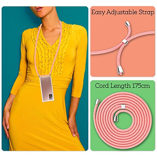 Kaliroo Chiaro Necklace Cover compatibile con SAMSUNG GALAXY NOTE 20 Custodia, Trasparente Copertura Rigida con Cordino, Sottile Resistene Skin Hardcase Protettiva & Laccio Tracolla, Colore:Rosa Pink