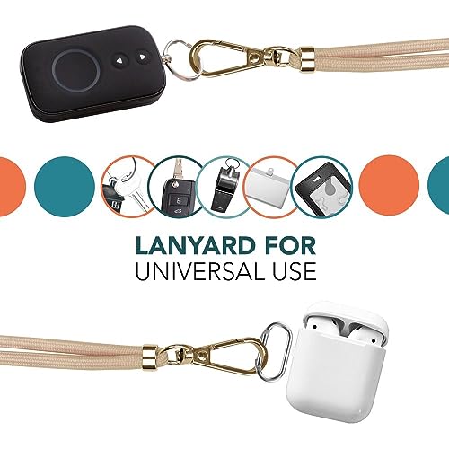 Kaliroo Cordino Universale con 2 Carte Pad & Moschettone (Metallo Oro), Laccio Regolabile 160cm per Custodia del Cellulare, Fissaggio per Smartphone, Chiavi, Carte d'identità, Colore:Beige