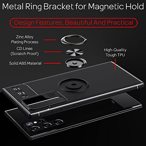 Kaliroo Cover Nero con Anello compatibile con Samsung Galaxy S22 Ultra Custodia, 360-Gradi Ring Rotante, Kickstand Case Opaco Silicone Antiscivolo Antiurto, Sottile Copertura Robusta, Colore:Nero