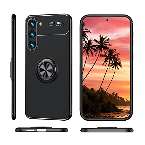 Kaliroo Cover Opaco con Anello compatibile con Samsung Galaxy S23 Plus Custodia, 360-Gradi Ring Rotante, Kickstand Case Nero Silicone Antiscivolo Antiurto, Slim Copertura Protettiva, Colore:Nero
