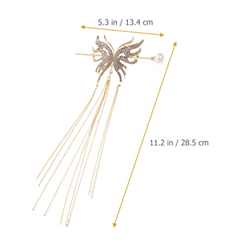 copricapo sposa leggero, misura adatta per l'uso, questo bastoncino per non appesantirà averlo indossato per tempo. per farfalla con 2 pezzi bacchette cinesi strass forcina per chignon sposa supporto per panino per le ragazze nastro dorato