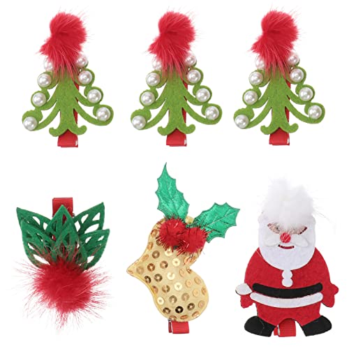 KALLORY 6 Fermagli per capelli natalizi per bambini ragazze albero di Natale Babbo Natale dolce forcine per capelli divertenti per capelli di Natale (assortiti)