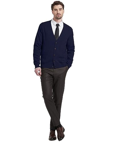 Kallspin Maglione Cardigan da Uomo con Scollo a V, con Bottoni e Tasche in Lana Cachemire (Blu Navy, XXL)