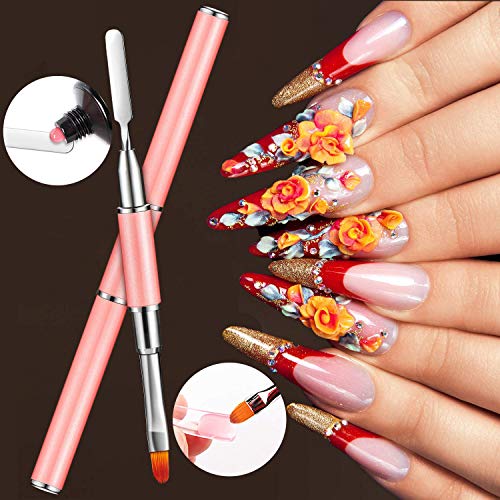 design a doppia estremità, la punta piatta serve per raccogliere il gel e la punta del pennello è per modellare le punte delle unghie, il design premuroso 2 in 1, rende la tua nail art più facile e più ponderata.