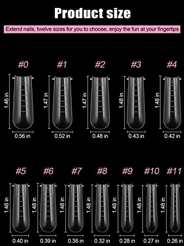 ⭐ 【Stampo per unghie a stiletto】 Riceverai 1 confezione da 120 pezzi di sistema a doppio chiodo, disponibile in 12 diverse dimensioni, ogni dimensione di unghie finte è adatta per la maggior parte delle dita e ogni unghia è incisa con un numero 0-11, quindi scegli l'unghia giusta Facile e conveniente per soddisfare le tue esigenze di unghie più ampie.