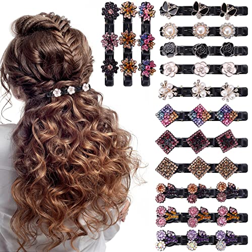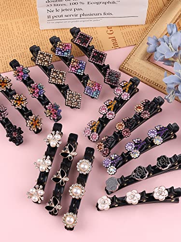 Kalolary Fermagli per Capelli Intrecciati in Cristallo, Fermaglio per Capelli a Fiore Con 3 Piccoli Clip Cristallo Mollette Capelli Adatto per Ragazze e Donna Festa di San Valentino