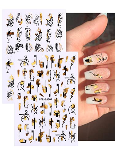 【Adesivi per nail art in oro nero】 Otterrai 18 fogli di adesivi per unghie, contiene foglie, facce astratte e un gran numero di motivi tra cui scegliere, che possono soddisfare le tue esigenze di manicure.