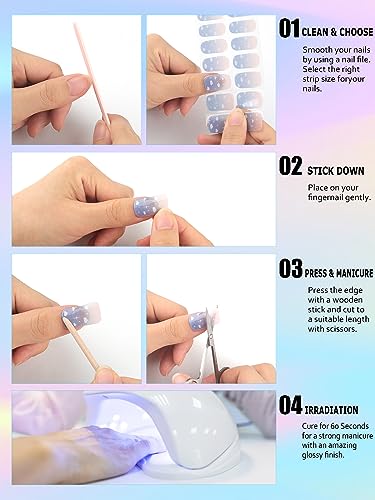 【Adesivo per smalto per unghie in vero gel】 Le strisce per unghie in gel semi-indurito di nuovo stile sono realizzate con veri ingredienti per smalto per unghie in gel, non materiale plastico. Sono più luminosi, più stabili e durano fino a due settimane se completamente polimerizzati con lampada UV/LED.