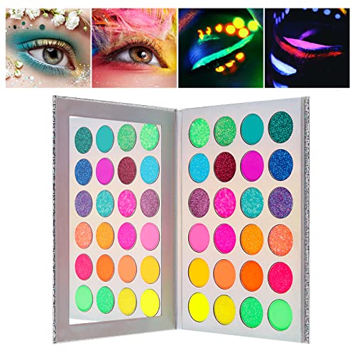 Kalolary Palette di ombretti luminosi al neon, tavolozza di ombretti 24 colori altamente pigmentati, kit per trucco UV Glow Blacklight Matte e glitter per il trucco delle donne