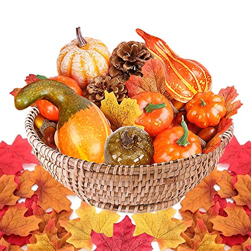 Decorazione perfetta per il festival: questo set di decorazioni per il raccolto artificiale sarà un ottimo arredamento per la casa, la casa, il negozio, la cucina durante i festival tra cui il Ringraziamento, Halloween, Natale. La combinazione di finte foglie d'acero, coni e zucche artificiali aumenterà notevolmente l'atmosfera di tutte le feste.