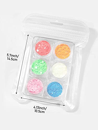 Contenuto della confezione: ci sono 6 diversi colori di paillettes per unghie a forma di cuore luminose in un unico pacchetto, tra cui arancione, ciano, blu, rosa, rosso e bianco. Puoi scegliere diversi colori di paillettes per la decorazione delle unghie. È il regalo perfetto per la tua ragazza.