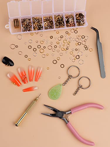 Kalolary 1014 Pezzi Piercing Dangle Nail Art Fascini, 6 Dimensioni Connettori Anelli Fascini Arte Unghie Strumento Trapano a Mano Dangle con Pinze per Becco e Pinze per Depilare Gioielli