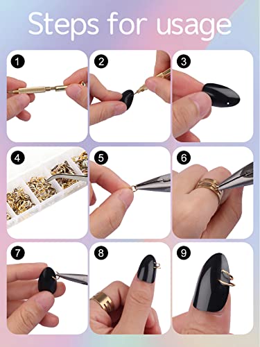 Strumento di perforazione delle unghie: questo strumento di perforazione del fascino dell'arte delle unghie è stato appositamente progettato per cucire le unghie, che possono essere perforati con fori nelle unghie artificiali per appendere anelli di gioielli per unghie. Puoi usarli per appendere gli anelli aperti sulle tue unghie finte come decorazioni, aggiungendo divertimento alle tue dita.