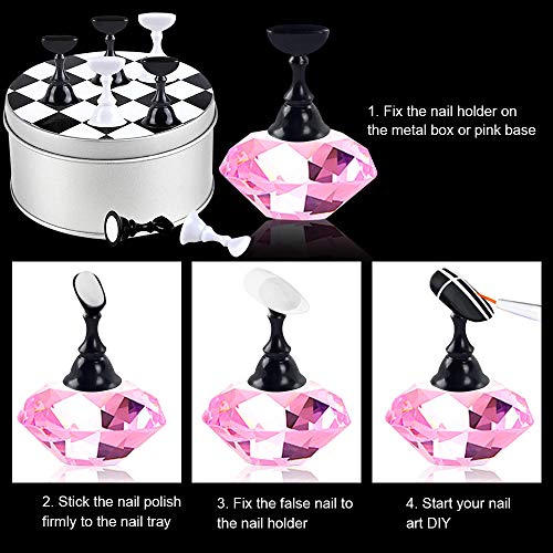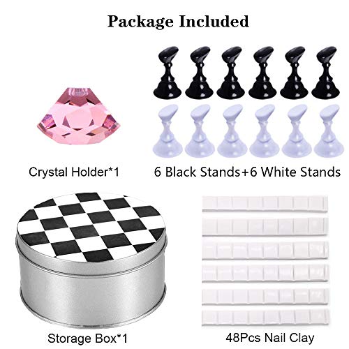 ♥ Set perfetto -Un set (1 base + 12 supporti per puntali per unghie + 48 pezzi di stucco adesivo riutilizzabile bianco). Design con fondo magnetico, puoi usarlo da solo o ripararlo sulla base da usare. Rende le tue unghie più alla moda e attira l'attenzione.