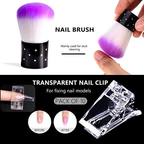 Kalolary Unghie Finte Nail System Form, 100pcs Unghie Finte Nail System Form 10Pcs Clip di Punte Pennello per Unghie in Gel a Doppia Estremità Lima Unghie Kit di Strumenti per Unghie
