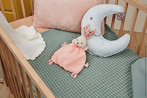 DOUDOU CONIGLIO PAPAVERO: Con il suo bellissimo colore rosa pallido e i dettagli stampati a tema papavero (rosa e rosso), ecco un tenero coniglietto coccolone con orecchie lunghe e piccoli piedini facili da afferrare che delizieranno i più piccoli.