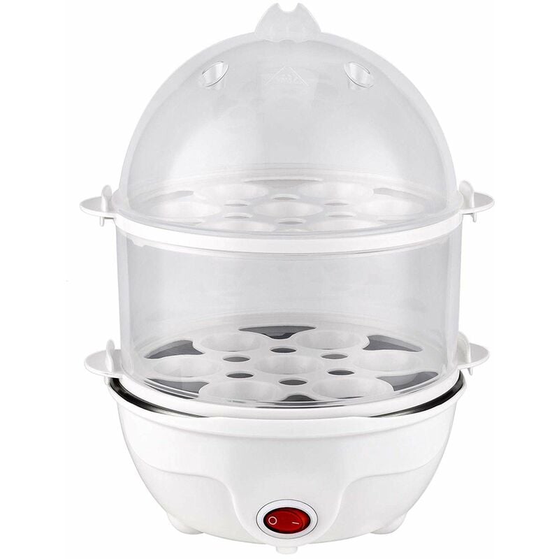 Fornello per uova Kalorik EK1001 con un'esclusiva opzione di cottura a vapore a 2 stadi. Tipo di prodotto: Cuoci uova. Tipo di cottura: a vapore. Capacità: 14 uova. Base in acciaio inox con vassoio per la cottura in camicia. Accessori: misurino graduato e stick d'uovo. Copertura trasparente. Segnale acustico di fine cottura. Potenza: 350 watt. Piedi antiscivolo. Interruttore acceso / spento illuminato. Voltaggio: 230 V. Colori: bianco. Dimensioni (LxPxH): 166 x 166 x 170 mm.