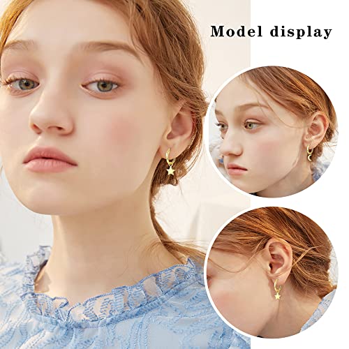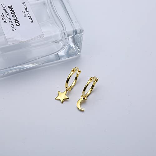 KALVICA Orecchini in Argento Sterling 925 Orecchini Pendenti Cerchio Donna Orecchini a Cerchio Stella e Luna piccoli orecchini a cerchio piccoli e carini Regalo per il compleanno