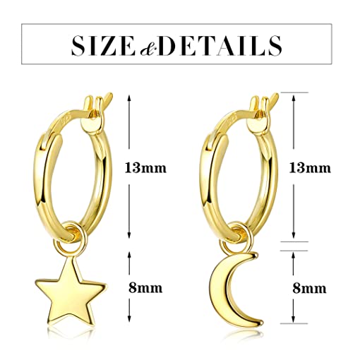 ♥Materiali di alta qualità: raffinati orecchini a cerchio piccoli, realizzati in argento sterling 925, ipoallergenici, privi di nichel, adatti per orecchie sensibili. Il diametro degli orecchini a cerchio è di 14 mm e la dimensione del ciondolo con stella e luna è di 8 mm.Orecchini di alta qualità adatti a ragazze, donne e fidanzate, che soddisfano tutti i più alti standard di qualità♥
