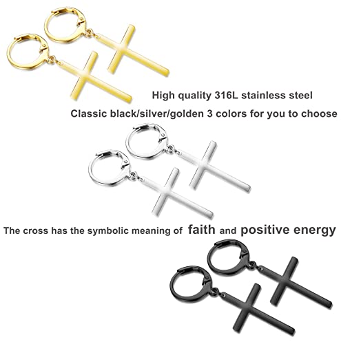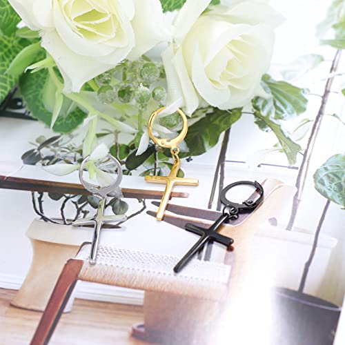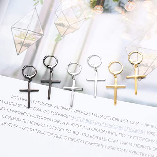 【Orecchini da uomo】 Una confezione contiene 3 paia di orecchini a croce in acciaio inossidabile nero, argento e oro. Design con simbolo della croce religiosa, stile semplice, quantità e qualità garantite. Set di gioielli economici che vale la pena acquistare